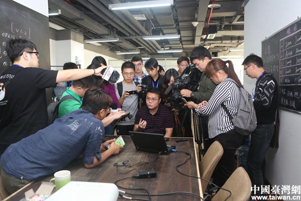 兩岸新媒體人在兩岸青年創(chuàng)業(yè)園對創(chuàng)業(yè)者進行采訪。(中國臺灣網 陳佳慧 攝)