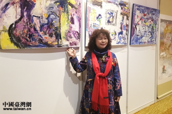 臺(tái)灣畫家羅彩琴在向大家介紹自己的畫作。(中國(guó)臺(tái)灣網(wǎng) 張露露 攝)