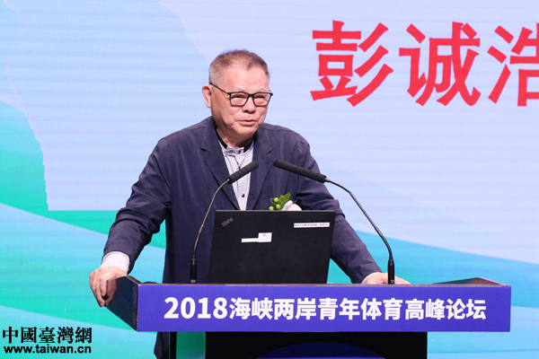 海峽兩岸棒球交流合作委員會名譽主席彭誠浩出席論壇并致辭。(中國臺灣網(wǎng) 尹賽楠 攝)