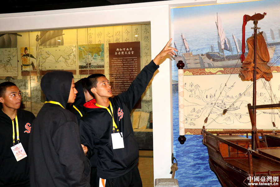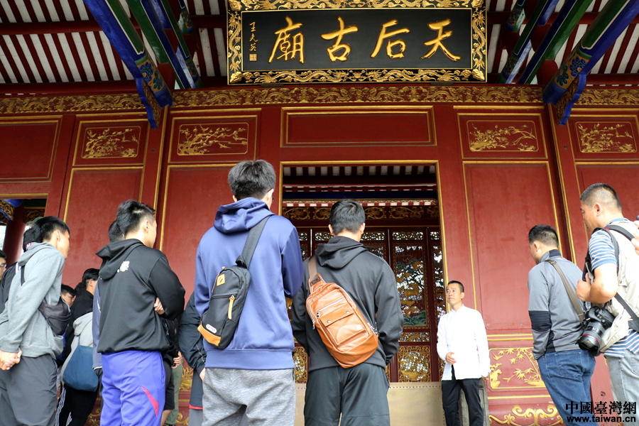 臺(tái)灣棒球選手參觀深圳赤灣天后博物館。(中國(guó)臺(tái)灣網(wǎng) 尹賽楠 攝)