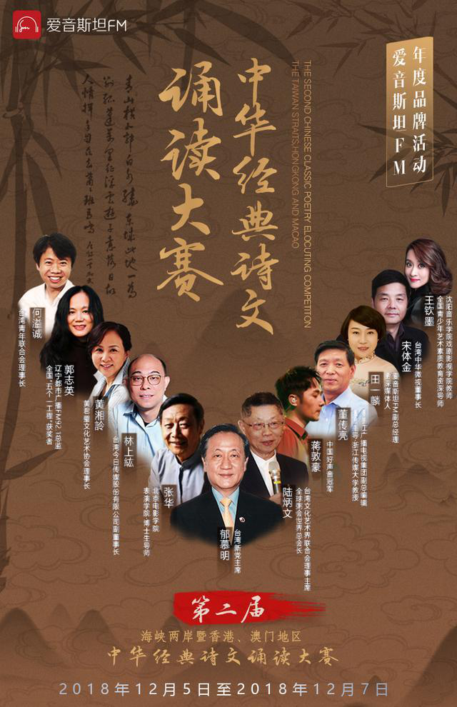 本屆大賽由國(guó)務(wù)院臺(tái)灣事務(wù)辦公室和中國(guó)國(guó)際文化傳播中心共同指導(dǎo),愛(ài)音斯坦FM和中國(guó)華藝音像實(shí)業(yè)有限公司共同主辦,是海峽兩岸及香港、澳門(mén)地區(qū)百家媒體與知名傳播機(jī)構(gòu)共同參與的本年度規(guī)模最大、影響力最強(qiáng)的誦讀賽事。
