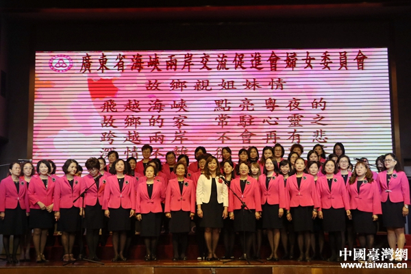 “飛越海峽,點(diǎn)亮粵夜之光。故鄉(xiāng)的家,常駐心靈之窗?缭絻砂,不會(huì)再有悲傷。故鄉(xiāng)親,姐妹情,已經(jīng)走向四方……”活動(dòng)現(xiàn)場(chǎng),林佳蓉帶領(lǐng)80余位會(huì)員代表合唱《故鄉(xiāng)親 姐妹情》,贏得到場(chǎng)嘉賓陣陣熱烈掌聲。