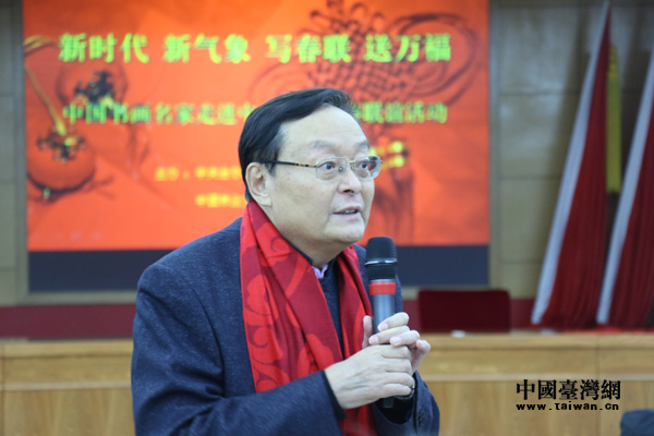 中共中央臺辦、國務院臺辦副主任、機關黨委書記龍明彪出席活動,龍主任對中國書畫名家們的到來表示熱烈歡迎和衷心感謝,為機關員工送去新春祝福,并給兩岸同胞拜年。中國林業(yè)文聯(lián)美術家協(xié)會主席、中央社會主義學院教授、中國花鳥畫研修院院長徐湛,原中直書協(xié)副主席、中國書協(xié)會員張瑞祥相繼致辭祝福。