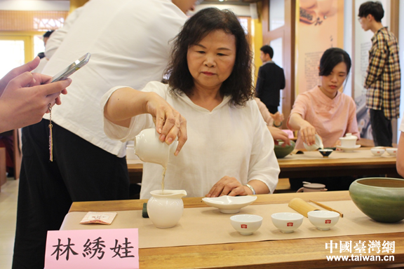 臺(tái)灣茶協(xié)會(huì)副理事長林繡娃進(jìn)行茶藝展示。(中國臺(tái)灣網(wǎng) 全志強(qiáng) 攝)