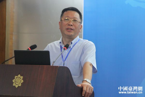福建江夏學(xué)院校長陳國龍做主旨報告。(中國臺灣網(wǎng) 張亞靜 攝)