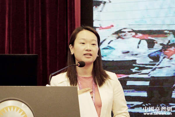 澳門特別行政區(qū)立法會議員、澳門婦女聯(lián)合總會副理事長黃潔貞作分享、交流。(中國臺灣網(wǎng) 李奕均 攝)