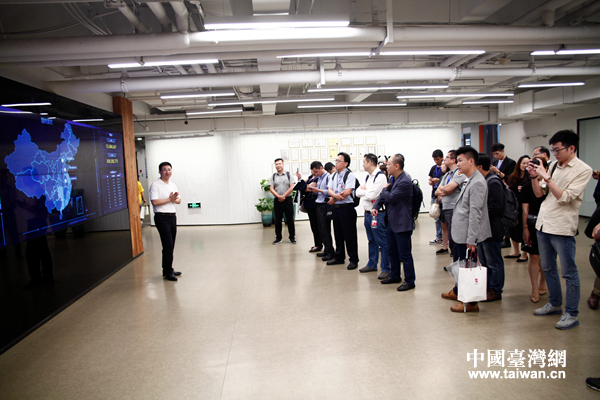 連連科技副總裁鄭箭向臺(tái)灣企業(yè)家代表團(tuán)介紹公司大數(shù)據(jù)平臺(tái)。 (中國(guó)臺(tái)灣網(wǎng) 王亮 攝)