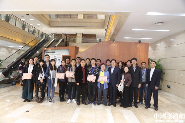 兩岸新媒體人在天津金城銀行 合影留念。(中國(guó)臺(tái)灣網(wǎng) 陳佳慧 攝)