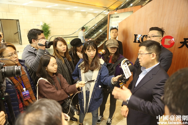 兩岸媒體人在中國(guó)(天津)自由貿(mào)易區(qū)進(jìn)行采訪。(中國(guó)臺(tái)灣網(wǎng) 陳佳慧 攝)