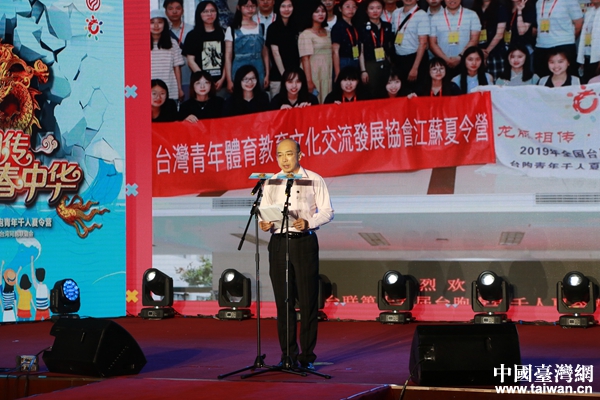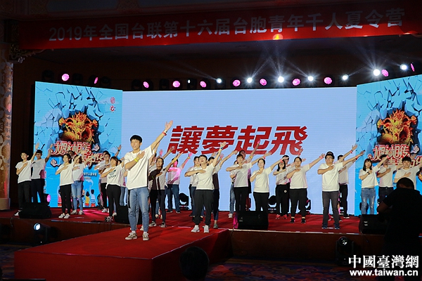 中共中央候補委員、全國人大常委、全國臺聯(lián)會長黃志賢宣布“2019年臺胞青年千人夏令營正式開營”并授夏令營總營旗。(中國臺灣網 李航 攝)