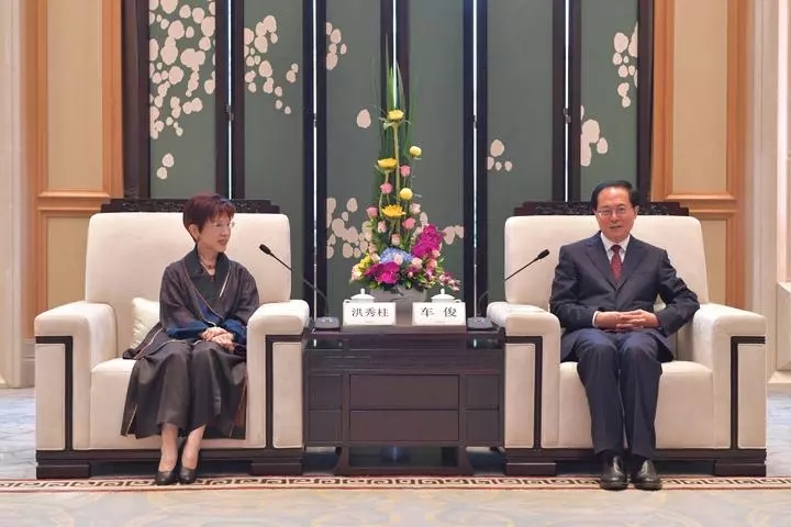 7月5日下午,省委書記車俊在杭州會見了中國國民黨前主席洪秀柱一行。