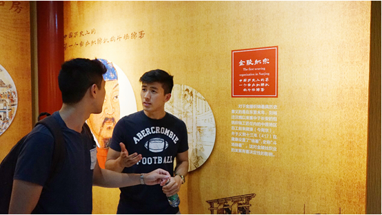 下午,營員們來到了南京云錦博物館。南京云錦是中國傳統(tǒng)的絲制工藝品,是國家首批非物質(zhì)文化遺產(chǎn),有“寸錦寸金”之稱。而南京云錦博物館是中國唯一的云錦專業(yè)博物館,館內(nèi)展示了云錦織造工藝、明清云錦精品實物,以特殊的浮雕、鑲嵌技藝,表達出特殊的審美境界和文化藝術(shù)魅力,反映出中華民族特有的文化內(nèi)涵。南京云錦所需要的特殊工藝,使其一直保留著傳統(tǒng)的提花木機織造的傳統(tǒng),必須由兩人合作共同操作的高大織機吸引了兩岸青年的目光,大家紛紛站在手工織機前觀看云錦的織造過程,欣賞著這流傳一千六百余年的古老技藝。