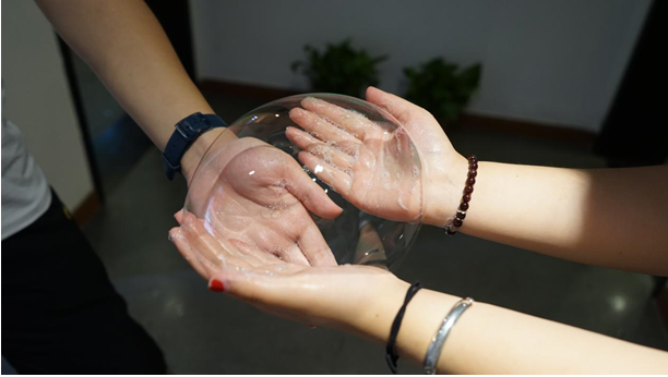 相熟的人在一起玩什么都會玩得非常開心,在慧聚廣場有一群人玩吹泡泡玩了半個多小時,誰能想到這是一群平均年齡20多歲的人呢?