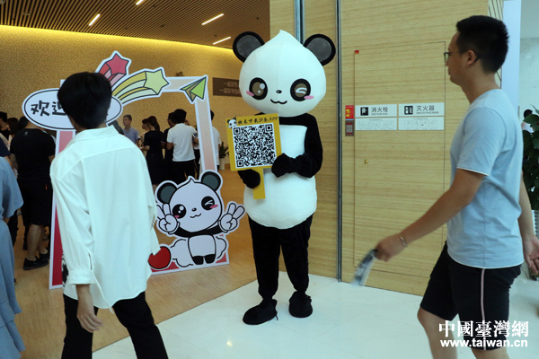 8月7日下午,2019海峽青年(福州)峰會在福州海峽文化藝術(shù)中心舉行。圖為融融品牌形象在峰會現(xiàn)場。(中國臺灣網(wǎng) 王怡然 攝)
