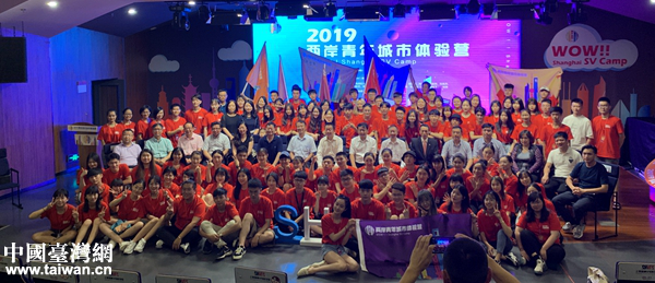 8月20日下午,2019兩岸青年城市體驗營啟動儀式在上海大學(xué)延長校區(qū)隆重舉行。圖為領(lǐng)導(dǎo)嘉賓與兩岸青年學(xué)員合影。(中國臺灣網(wǎng) 陳文韜 攝)