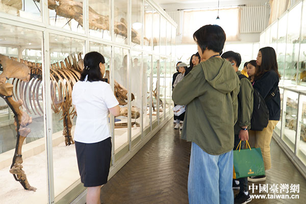 在交流前,文藻外語(yǔ)大學(xué)的師生們先去參觀了校內(nèi)集動(dòng)物、植物、地質(zhì)、古生物、古人類等多學(xué)科的綜合性博物館——北疆博物館。