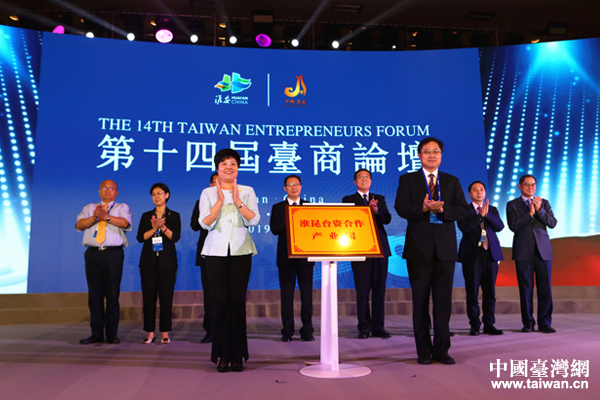 8月23日,第十四屆臺(tái)商論壇在江蘇省淮安市舉行。論壇現(xiàn)場(chǎng),舉行了淮昆臺(tái)資合作產(chǎn)業(yè)園揭牌儀式。(中國(guó)臺(tái)灣網(wǎng)發(fā) 論壇組委會(huì)供圖)