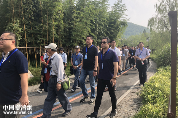 17日上午,海峽兩岸的知名專家、農(nóng)業(yè)與休閑產(chǎn)業(yè)方面的臺商、臺灣基層鄉(xiāng)親代表等200余人參訪了“兩山”理論的發(fā)源地—浙江省湖州市安吉縣余村。(中國臺灣網(wǎng) 李航 攝)