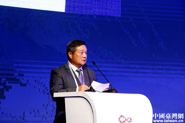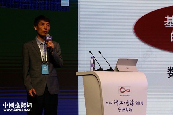 浙江中之杰智能系統(tǒng)有限公司創(chuàng)始人、總裁、寧波騰訊云產(chǎn)業(yè)基地董事長蘇玉學(xué)作主題演講。(中國臺灣網(wǎng) 李杰 攝)