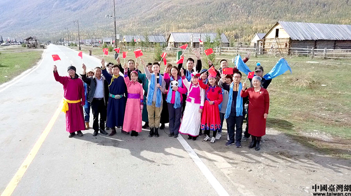 兩岸青年與當(dāng)?shù)厣贁?shù)民族朋友一起在新疆哈納斯村唱響《我和我的祖國(guó)》。 (中國(guó)臺(tái)灣網(wǎng) 發(fā))