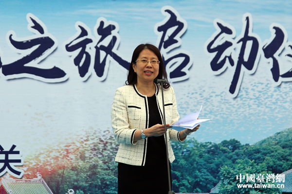 廣東省臺辦副主任、廣東省海峽兩岸交流促進(jìn)會副會長黃兆芬為活動授旗。(中國臺灣網(wǎng) 李奕均 攝)