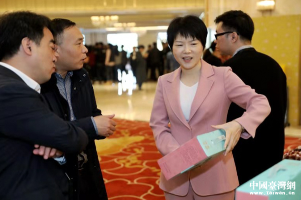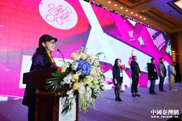 臺灣形象策略聯(lián)盟執(zhí)行主席林采霖發(fā)表對獲獎作品的評價。她是2018中國改革開放40年設計人特殊功勛獎獲得者。(中國臺灣網(wǎng)發(fā))
