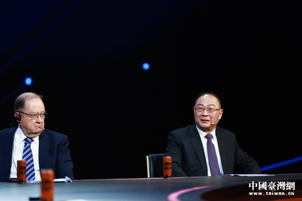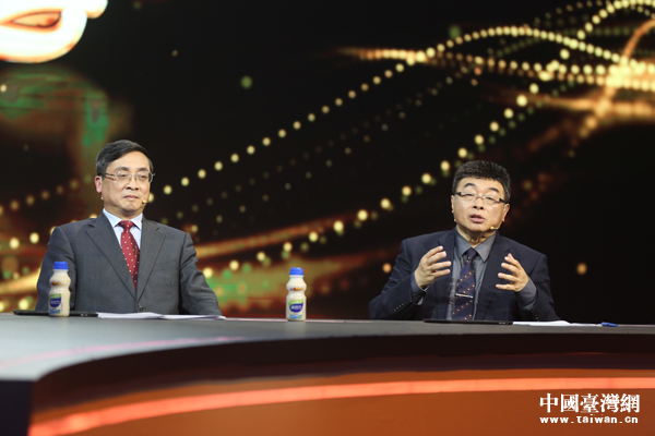 復(fù)旦大學(xué)中國(guó)研究院研究員、東南衛(wèi)視《中國(guó)正在說(shuō)》節(jié)目主持人鄭若麟(中)。(中國(guó)臺(tái)灣網(wǎng)發(fā))