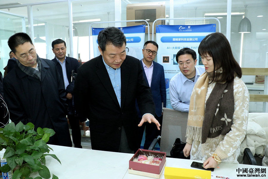 陳元豐在成都星點(diǎn)海峽兩岸新經(jīng)濟(jì)創(chuàng)業(yè)園看望臺灣創(chuàng)業(yè)青年。(中國臺灣網(wǎng) 尹賽楠 攝)