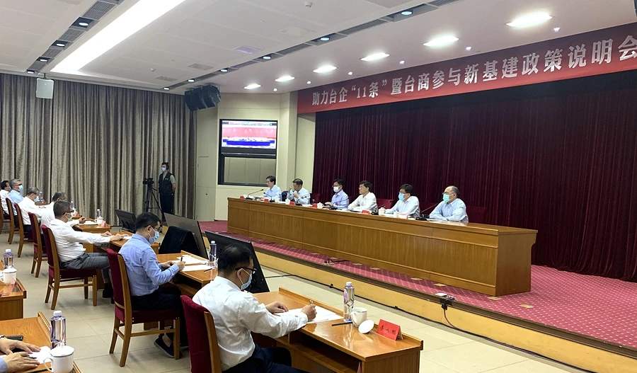 國(guó)務(wù)院臺(tái)辦、國(guó)家發(fā)展改革委、工業(yè)和信息化部、商務(wù)部相關(guān)業(yè)務(wù)司局15日以視頻會(huì)議形式,共同舉辦助力臺(tái)企“11條”暨臺(tái)商參與新基建政策說(shuō)明會(huì)。