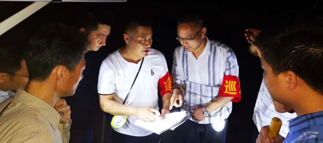 陳安(左五)正在認(rèn)真核對當(dāng)日白天巡查情況記錄表,做好晚間當(dāng)值交接準(zhǔn)備