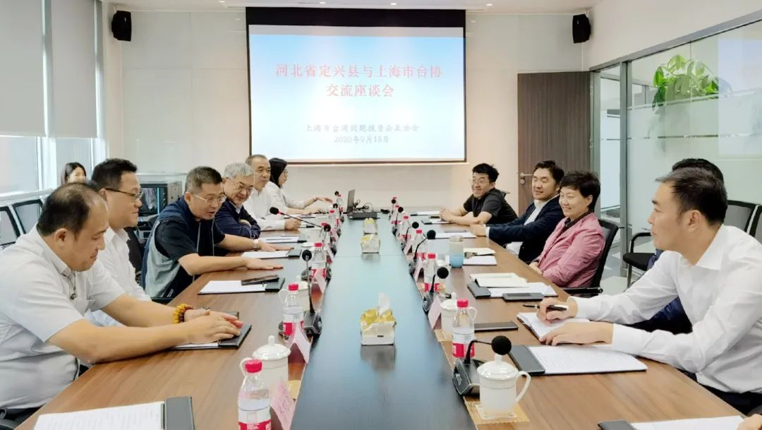 9月18日上午,定興縣委書記韓朝紅一行6人拜訪上海市臺(tái)協(xié)。上海市臺(tái)辦經(jīng)濟(jì)處處長丁磊、市臺(tái)協(xié)常務(wù)副會(huì)長胡興中、副會(huì)長吳泓諭等出席交流座談。