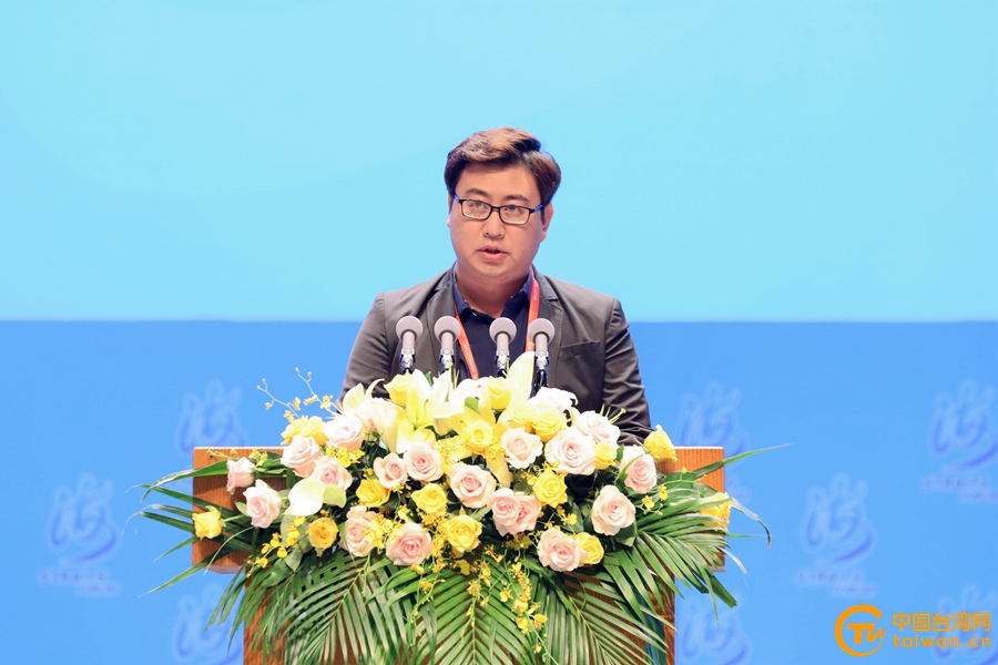 在廈臺(tái)灣青年參與抗疫工作團(tuán)隊(duì)代表陳俊宇在論壇大會(huì)上發(fā)言。(中國(guó)臺(tái)灣網(wǎng) 尹賽楠 攝)