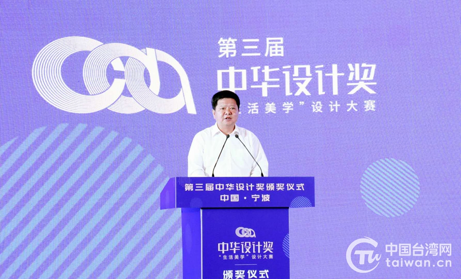 中共中央臺(tái)辦、國(guó)務(wù)院臺(tái)辦副主任龍明彪出席第三屆中華設(shè)計(jì)獎(jiǎng)?lì)C獎(jiǎng)儀式并致辭。(中國(guó)臺(tái)灣網(wǎng) 普燕 攝)