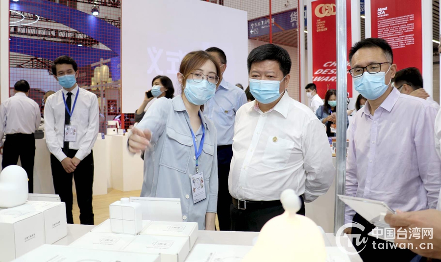 中共中央臺(tái)辦、國(guó)務(wù)院臺(tái)辦副主任龍明彪?yún)⒂^中華設(shè)計(jì)獎(jiǎng)優(yōu)秀作品展出。(中國(guó)臺(tái)灣網(wǎng) 普燕 攝)