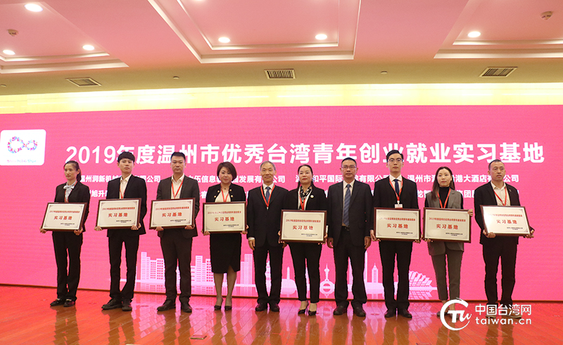 論壇舉行了2019年度溫州市優(yōu)秀臺灣青年創(chuàng)業(yè)就業(yè)實習(xí)基地授牌儀式。(中國臺灣網(wǎng) 普燕 攝)