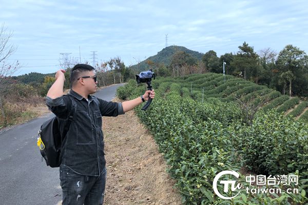 臺灣青年創(chuàng)作人森哥在安吉魯家村白茶園拍攝VOLG(中國臺灣網(wǎng) 符海川 攝)