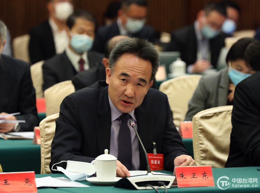 中國社科院臺灣硏究所副所長朱衛(wèi)東在座談會上發(fā)言。(中國臺灣網(wǎng) 尹賽楠 攝)