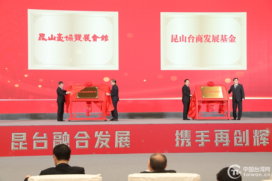 現(xiàn)場(chǎng)舉行了昆山臺(tái)商發(fā)展基金和昆山臺(tái)協(xié)發(fā)展會(huì)館揭牌儀式。(中國(guó)臺(tái)灣網(wǎng) 尹賽楠 攝)