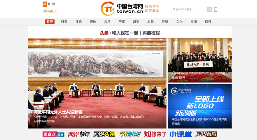 中國臺(tái)灣網(wǎng)(m.com3y.cn)新版首頁于2021年2月3日全新上線