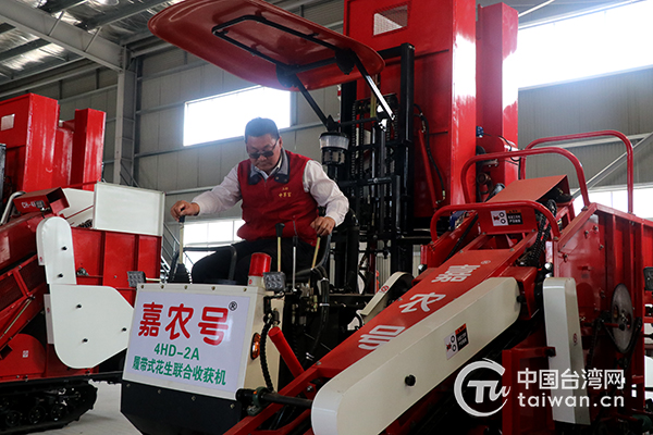 圖為臺胞鄭志峰在調(diào)試剛剛生產(chǎn)的農(nóng)機。