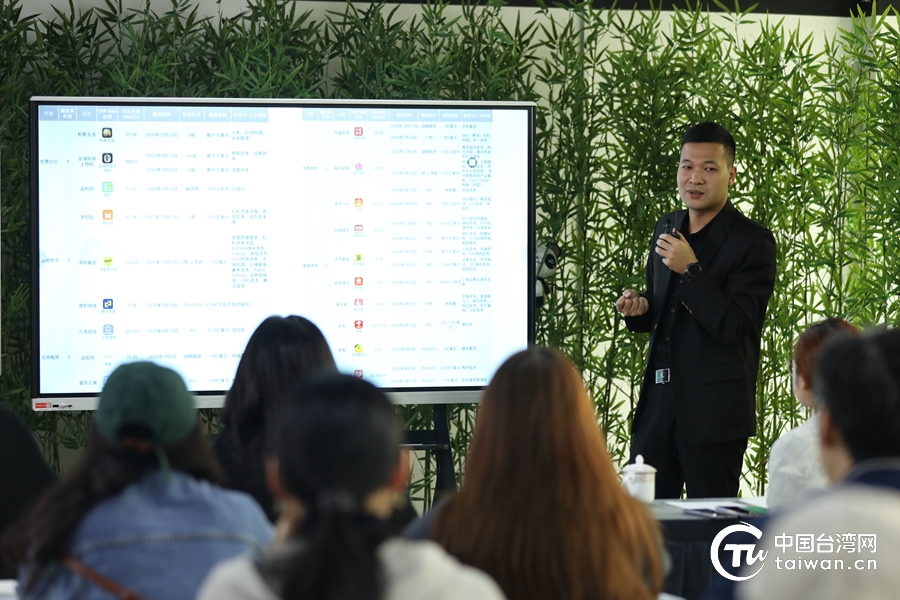 4月25日,由中國臺灣網(wǎng)舉辦的海峽兩岸古風(fēng)茶裳直播季·臺青電商培訓(xùn)進行中。圖為發(fā)條學(xué)社CEO、新媒體電商資深從業(yè)者金風(fēng)介紹短視頻與直播電商現(xiàn)狀與趨勢。(中國臺灣網(wǎng) 張亞靜 攝)