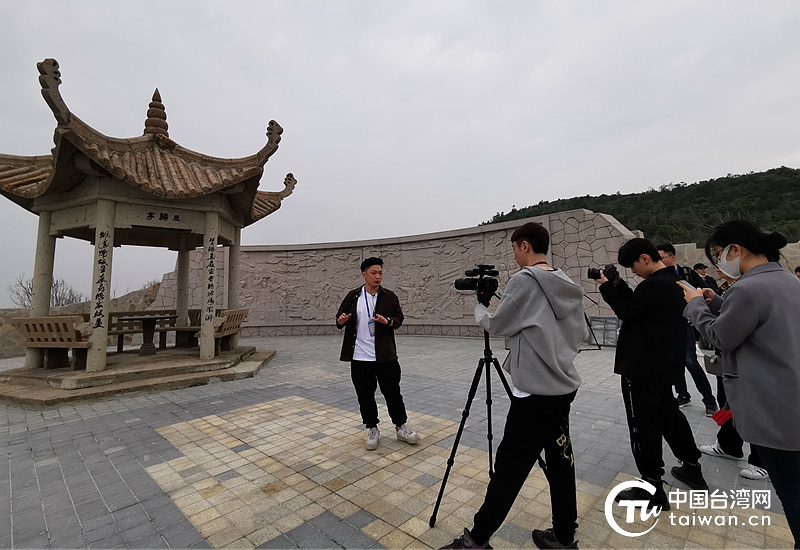 臺(tái)灣青年陳圣浩帶領(lǐng)他的團(tuán)隊(duì)在現(xiàn)場(chǎng)進(jìn)行拍攝,介紹講解思?xì)w亭的歷史故事。(中國(guó)臺(tái)灣網(wǎng) 張亞靜 攝)