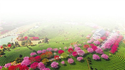 圖為2021年2月17日,游客在福建省龍巖市漳平市永福鎮(zhèn)臺灣農(nóng)民創(chuàng)業(yè)園臺品櫻花茶園觀賞櫻花。