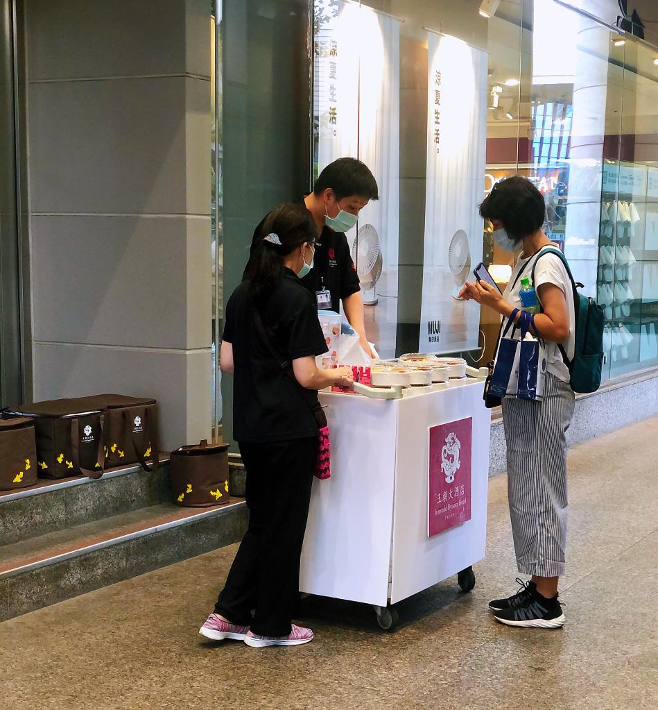 疫情三級警戒下,餐廳不可內(nèi)用,只能外送或外帶。臺北微風(fēng)南京商場附近,民眾在挑選外帶便當(dāng)。新華社記者 姜婷婷 攝