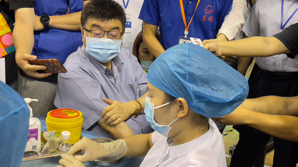 在結(jié)束了21天的隔離后,臺灣中國文化大學(xué)教授邱毅12日下午在廈門接種新冠疫苗。在留觀30分鐘后,他接受媒體采訪時說:“一切正常,一點(diǎn)不舒服的感覺都沒有!