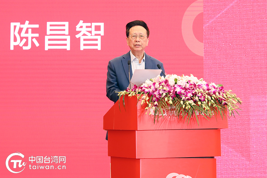 第十二屆全國人大常委會副委員長、中華職教社第十一屆理事會理事長陳昌智為獲得杰出貢獻獎的單位和個人頒獎。(中國臺灣網(wǎng) 陳佳慧 攝)