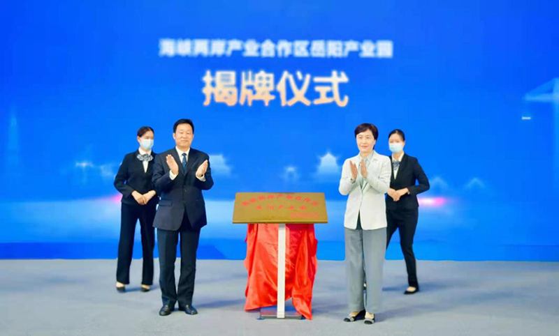 岳陽市委副書記、市長李愛武,岳陽市委副書記、城陵磯新港區(qū)黨工委第一書記李摯共同為湖南海峽兩岸產(chǎn)業(yè)合作區(qū)岳陽產(chǎn)業(yè)園揭牌。(中國臺灣網(wǎng)發(fā))