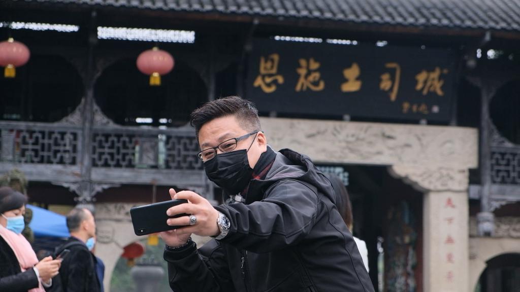 11月3日,臺灣東森電視臺記者楊釗在恩施土司城參觀。新華社記者 賈金明 攝