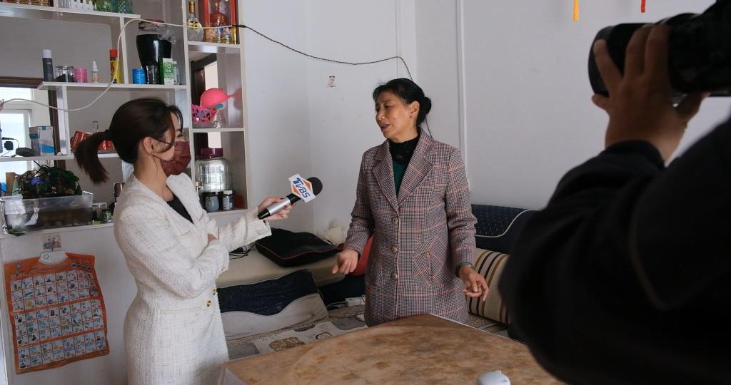 11月5日,臺灣TVBS記者陳韻雯在恩施宣恩縣松坪易地扶貧安置區(qū)的居民家中采訪。新華社記者 賈金明 攝