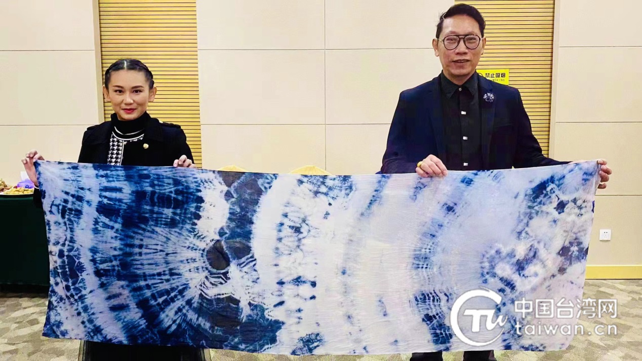 夫妻倆展示一起創(chuàng)作的扎染絲巾(葉春祿 攝)